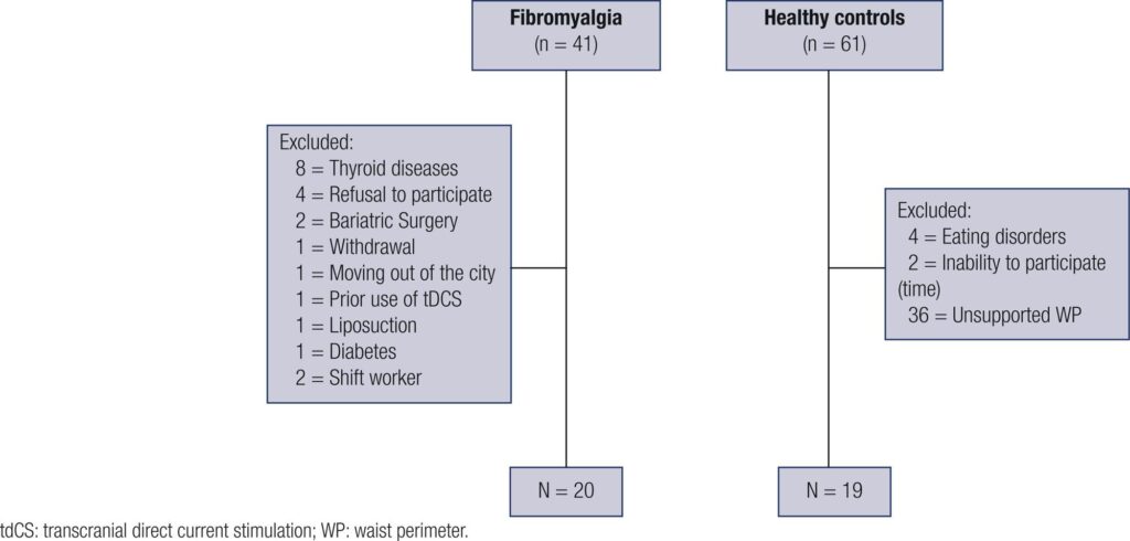To assess disordered eating, hunger and satiety perceptions in women with fibromyalgia (FM) compared to healthy controls (HC) and their association with biomarkers of brain plasticity (brain-derived neurotrophic factor (BDNF) and S100 calcium-binding protein B (S100B)).