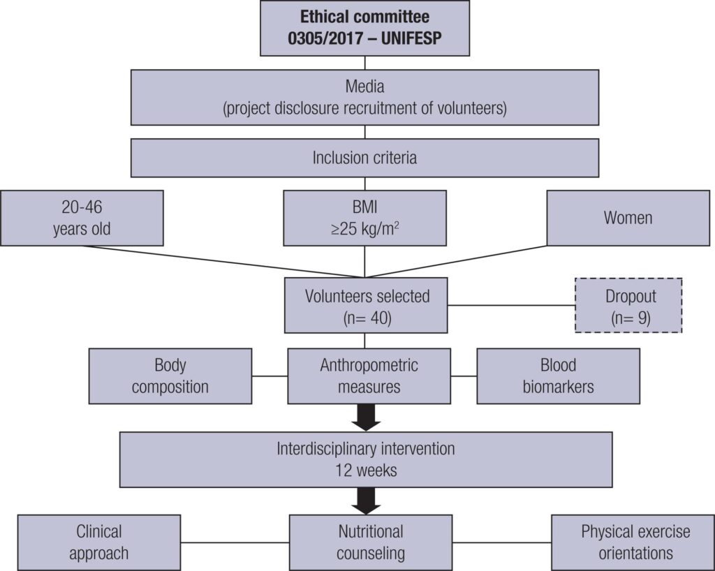 To investigate the effects of an interdisciplinary intervention on biomarkers of inflammation and their relationship with fibroblast growth factor 21 (FGF21) concentrations in women with overweight and obesity.