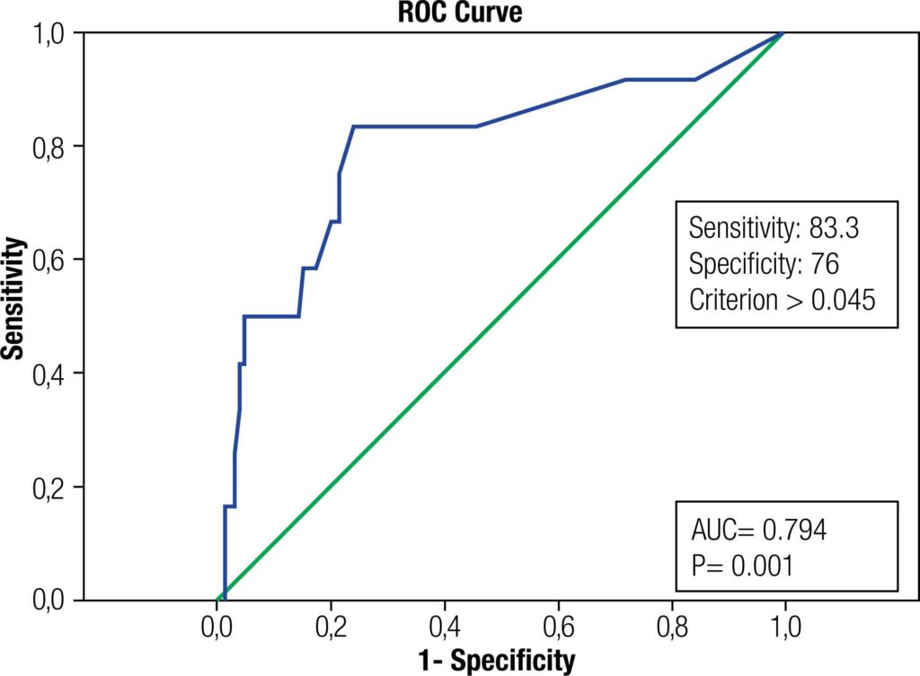 Treatment modality and pretreatment TSH, FT4, and ESR were significantly different between patients with and without recurrence (p = 0.011, 0.001, 0.004, and 0.026, respectively). Compared with patients without recurrence, those with recurrence had higher pretreatment TSH levels, but lower FT4 and ESR levels. On logistic regression analysis, treatment modality was found to be an independent risk factor for recurrence. The risk of recurrence was higher in those taking steroids than in those taking NSAIDs (p = 0.015). The optimal TSH cutoff value for recurrence was 0.045 μIU/mL, with a sensitivity of 83.3% and specificity of 76% (AUC 0.794, 95% CI 0.639-0.949).
