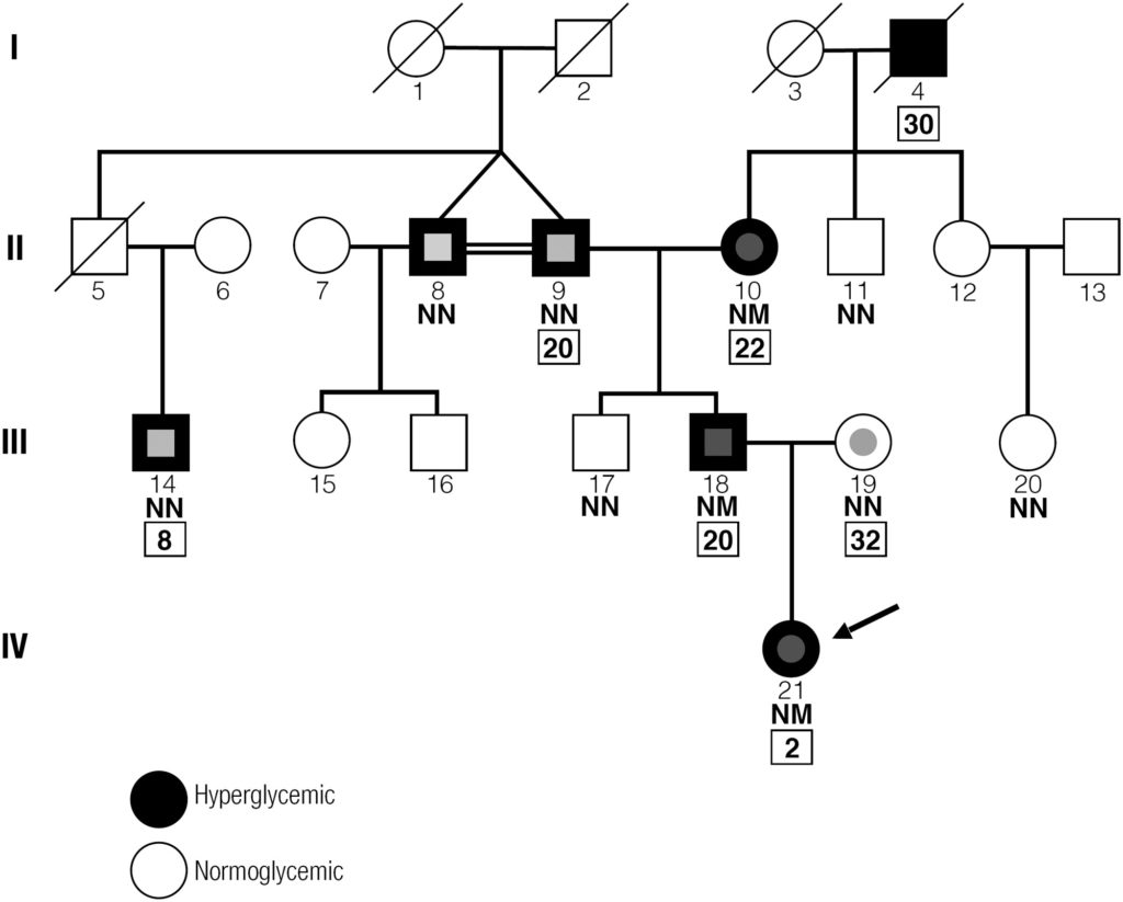 Identification of the correct etiology of diabetes brings important implications for clinical management. In this report, we describe a case of a 4-year old asymptomatic girl with diabetes since age 2, along with several individuals in her family with different etiologies for hyperglycemia identified in youth. Genetic analyses were made by Sanger sequencing, laboratory measurements included HbA1c, lipid profile, fasting C-peptide, pancreatic auto-antibodies (glutamic acid decarboxylase [GAD], Islet Antigen 2 [IA-2], and anti-insulin). We found a Gly178Ala substitution in exon 5 of GCK gene in three individuals co-segregating with diabetes, and type 1 diabetes was identified in two other individuals based on clinical and laboratory data. One individual with previous gestational diabetes and other with prediabetes were also described. We discuss difficulties in defining etiology of hyperglycemia in youth in clinical practice, especially monogenic forms of diabetes, in spite of the availability of several genetic, laboratory, and clinical tools.