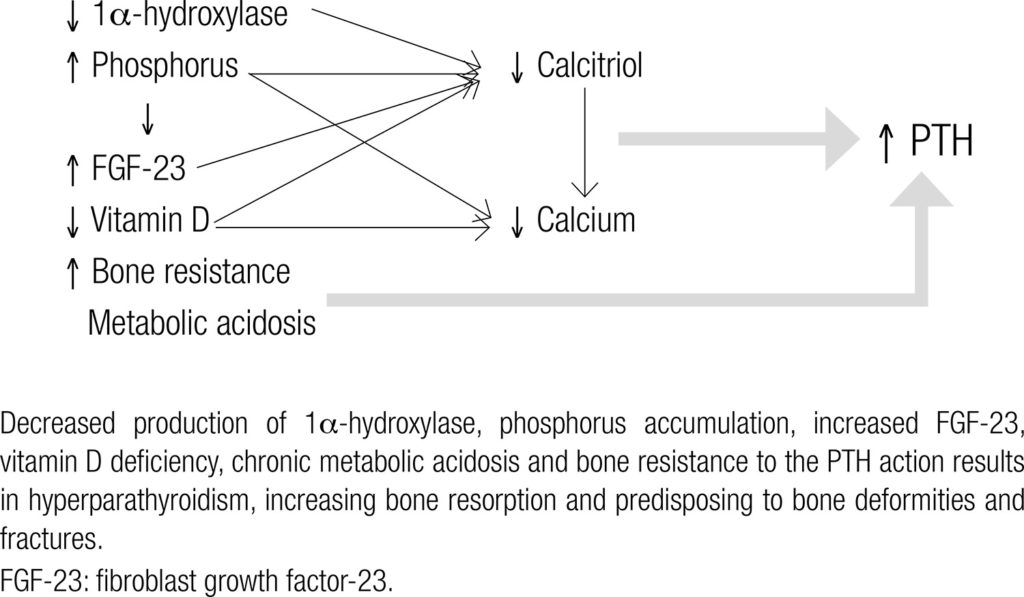 Aging is associated with decreases in bone quality and in glomerular filtration. Consequently, osteoporosis and chronic kidney disease (CKD) are common comorbid conditions in the elderly, and often coexist. Biochemical abnormalities in the homeostasis of calcium and phosphorus begin early in CKD, leading to an increase in fracture risk and cardiovascular complications since early stages of the disease. The ability of DXA (dual energy X-ray absorptiometry) to diagnose osteoporosis and to predict fractures in this population remains unclear. The management of the disease is also controversial: calcium and vitamin D, although recommended, must be prescribed with caution, considering vascular calcification risk and the development of adynamic bone disease. Furthermore, safety and effectiveness of osteoporosis drugs are not established in patients with CKD. Thus, risks and benefits of antiosteoporosis treatment must be considered individually.